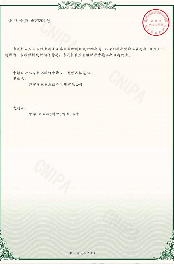 Jining Zezhong resources comprehensive utilization Co., Ltd.